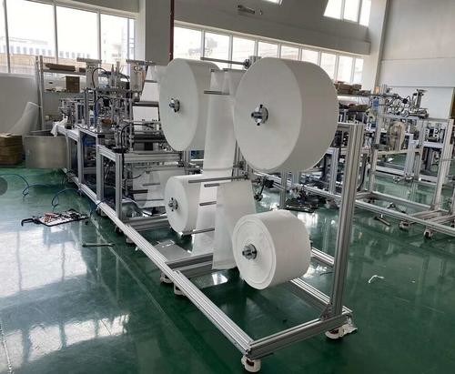 Оборудование использовано для произведения устранимой не-сплетенной маски. Оборудование главным образом составлено питаться, формирующ, сваривающ, резать, соединяться и переносящ, приполюсная заварка уха, прикрывать и штабелировать, етк. в дополнение к ручной питаться, весь процесс от сырья питаясь к штабелировать продукта вырезывания края ввода носика нервюры законченный полностью автоматическая деятельность. Машина может быть совмещена одним сварщиком уха 2-поляка тяги тяги одного или одного для того чтобы соотвествовать различные производственной мощности.